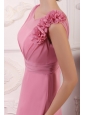 Rose Pink Empire V-neck Court Train Prom Dress with Flowers