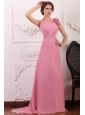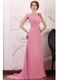 Home >  Prom Dresses >  Best Prom Dresses > Rose Pink Empire V-neck Court Train Prom Dress with Flowers