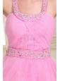 Home >  Prom Dresses >  Fashionable Prom Dresses > Rose Pink Halter Top Neck Mini-length Beading Prom Dress with Organza