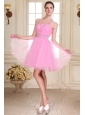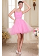 Rose Pink Halter Top Neck Mini-length Beading Prom Dress with Organza