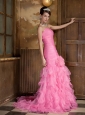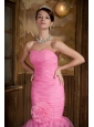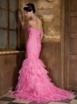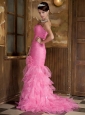 Rose Pink Mermaid Sweetheart Brush Train Satin and Organza Ruch Prom Dress