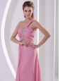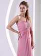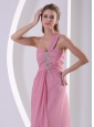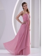 Rose Pink One Shoulder Chiffon 2013 Prom / Evening Dress With Beading Decorate Bust