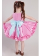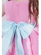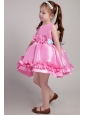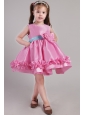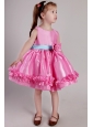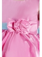 Rose Pink Princess Scoop Knee-length Taffeta Belt and Handle Made Flowers Little Girl Dress
