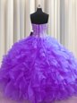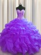 Rose Pink Scoop Lace Up Beading and Pick Ups Quinceanera Dress Sleeveless