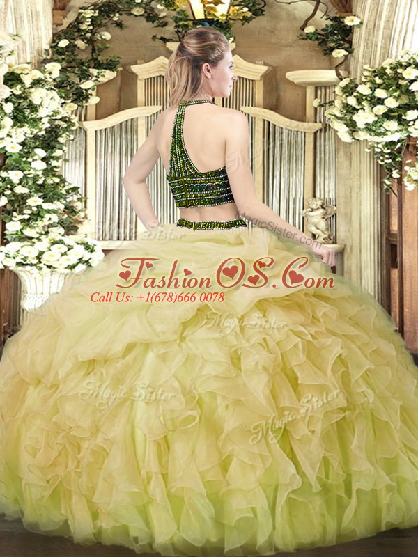 Rose Pink Sleeveless Organza Zipper 15th Birthday Dress for Military Ball and Sweet 16 and Quinceanera