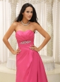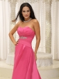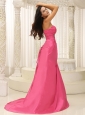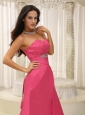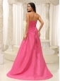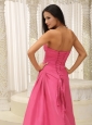 Rose Pink Sweetheart Ruched Bodice Satin Appliques For Bridesmaid Dress