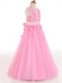 Home >  Special Occasion Dresses >  Mini Quinceanera Dresses > Rose Pink Tulle Zipper Scoop Sleeveless Floor Length Girls Pageant Dresses Appliques and Bowknot
