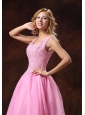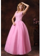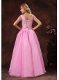 Rose Pink Wide Scoop Lace-up Princess Prom Dress For Party Appliques Decorate