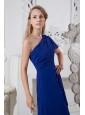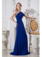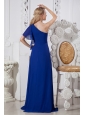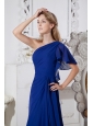 Royal Blue A-line One Shoulder Prom Dress Brush Train Chiffon