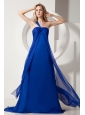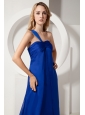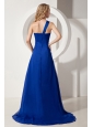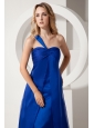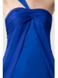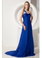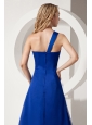 Royal Blue A-line One Shoulder Ruch Prom / Evening Dress Brush Train Satin and Chiffon