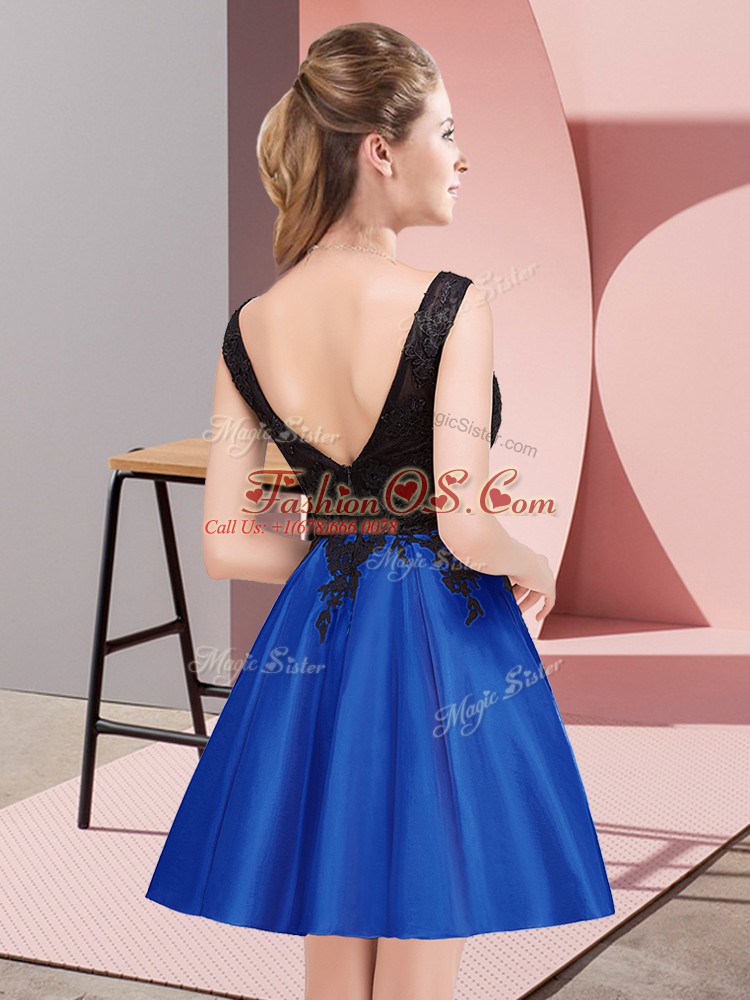 Royal Blue A-line Satin Scoop Sleeveless Lace Mini Length Zipper Bridesmaids Dress