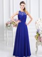 Royal Blue Backless Scoop Lace Bridesmaid Dresses Chiffon Sleeveless