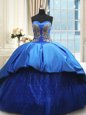 Royal Blue Ball Gowns Beading and Embroidery Quinceanera Dress Lace Up Satin Sleeveless With Train