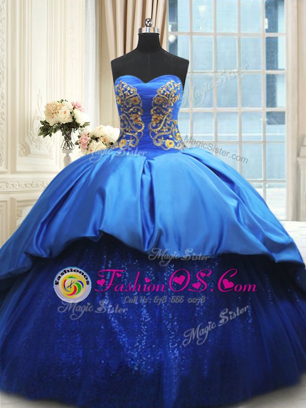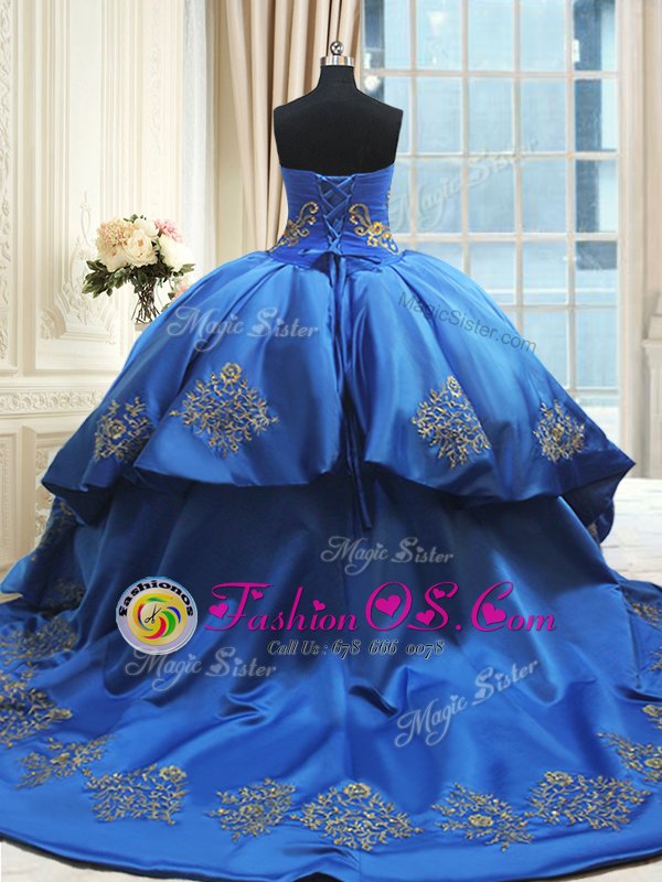 Home >  Quinceanera Dresses >  Cheap Quinceanera Dresses > Royal Blue Ball Gowns Beading and Embroidery Quinceanera Dress Lace Up Satin Sleeveless With Train