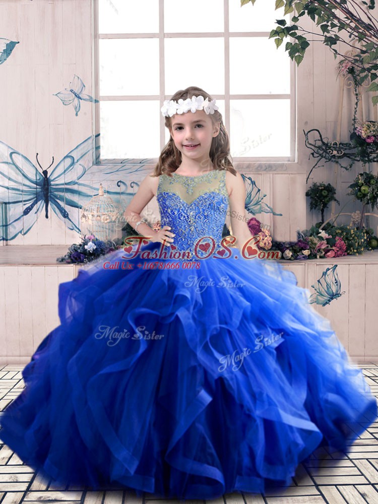 Home >  Special Occasion Dresses >  2019 Little Girl Pageant Dresses > Royal Blue Ball Gowns Beading and Ruffles Little Girls Pageant Dress Wholesale Lace Up Tulle Sleeveless Floor Length
