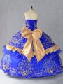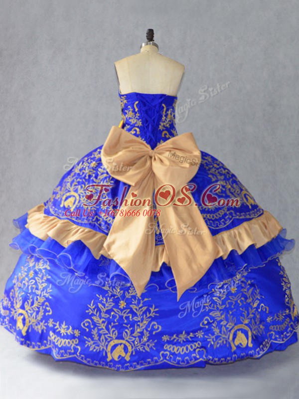 Royal Blue Ball Gowns Satin and Organza Sweetheart Sleeveless Embroidery and Bowknot Floor Length Lace Up 15 Quinceanera Dress