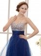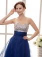 Royal Blue Beaded Decorate Bodice A-line Mini-length Cocktail Prom Gowns 2013 Custom Made
