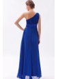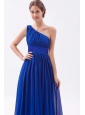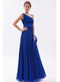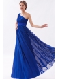 Royal Blue Chiffon Beading Prom Dress Empire One Shoulder Floor-length