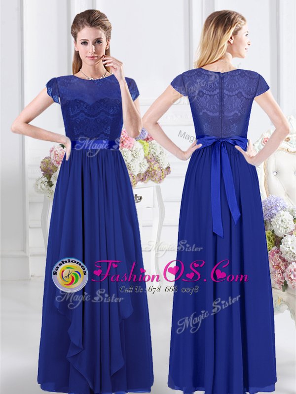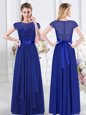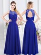 Royal Blue Chiffon Zipper Dama Dress Sleeveless Floor Length Lace and Ruffles and Ruching
