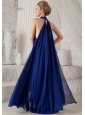 Home >  Prom Dresses >  Sexy Prom Dresses > Royal Blue Column Halter Watteau Train Chiffon Ruch Prom / Evening Dress