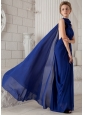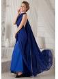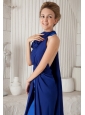 Royal Blue Column Halter Watteau Train Chiffon Ruch Prom / Evening Dress