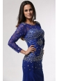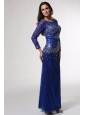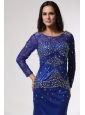 Royal Blue Column Scoop Beaded Prom Dress with Long Sleeves
