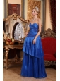 Home >  Prom Dresses >  Discount Prom Dresses > Royal Blue Column / Sheath Sweetheart Floor-length Organza Appliques Prom Dress