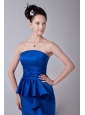 Royal Blue Column Strapless Prom / Homecoming Dress Satin Ruch Mini-length