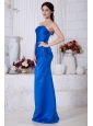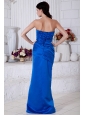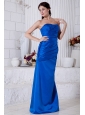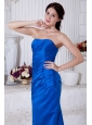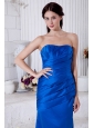 Royal Blue Column Strapless Ruch Mother Of The Bride Dress Brush Train Taffeta