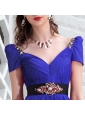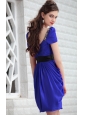 Heads will turn as you arrive at your prom or formal in this jersey v-neck short sleeve draping royal blue cocktail dress. You're sure to land on everyone's best dress list when you wear this dress. The cap sleeves with the beading accents make you like a queen, while the band is so feminine. The drapping skirt is so lovely to catch eyeryone's eyes.