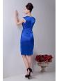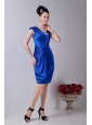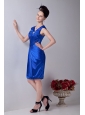 Royal Blue Column V-neck Prom / Homecoming Dress Knee-length Taffeta Beading