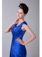 Home >  Prom Dresses >  Modest Prom Dresses > Royal Blue Column V-neck Prom / Homecoming Dress Knee-length Taffeta Beading
