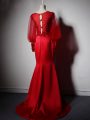 Royal Blue Elastic Woven Satin Clasp Handle Mother Of The Bride Dress Long Sleeves Brush Train Beading and Lace and Appliques