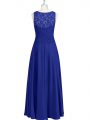 Royal Blue Empire Lace and Pleated Dress for Prom Zipper Chiffon Sleeveless Floor Length