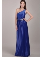 Royal Blue Empire One Shoulder Floor-length Taffeta Beading Prom Dress