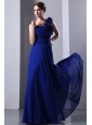 Home >  Prom Dresses >  Cheap Prom Dresses > Royal Blue Empire One Shoulder Hand Made Flowers Prom Dress Floor-length Chiffon