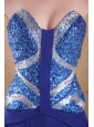 You’ll be sizzling hot in this dazzling evening gown.This prom dress features elegant strapless sweetheart bodice with glittering sequins fabric and flowing chiffon skirt. The gorgeous chiffon skirt is embellished with pleated draping details that add interest and details. You'll be the belle of the ball in this glittering royal blue gown.