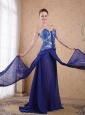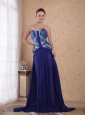 Royal Blue Empire Sweatheart Brush / Sweep Beading pleat Chiffon Prom / Party Dress