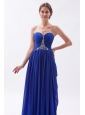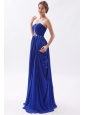 Royal Blue Empire Sweetheart Beading Prom Dress Brush Train Chiffon