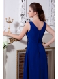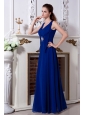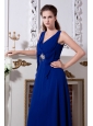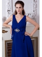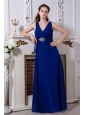 Royal Blue Empire V-neck Beading Bridesmaid Dress Floor-length Chiffon