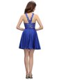 Silhouette: Empire Neckline: high-neck Sleeve Length: sleeveless Hemline/Train: mini length Back Detail: zipper Embellishment: beading Fabric: satin Shown Color: royal blue(Color & Style representation may vary by monitor.) Occasion: prom,party Season: spring,summer,fall Fully Lined: Yes Built-In Bra: Yes