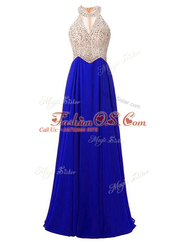 Home >  Prom Dresses >  Prom Dresses On Sale > Royal Blue High-neck Neckline Beading Sleeveless Zipper