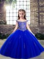 Royal Blue Lace Up Off The Shoulder Beading and Appliques Little Girls Pageant Dress Wholesale Tulle Sleeveless