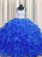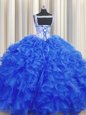 Royal Blue Lace Up Straps Beading 15 Quinceanera Dress Organza Sleeveless
