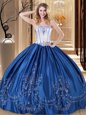 Royal Blue Lace Up Sweet 16 Quinceanera Dress Embroidery Sleeveless Floor Length
