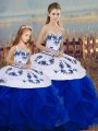 Royal Blue Lace Up Sweetheart Embroidery and Ruffles and Bowknot Quinceanera Dress Tulle Sleeveless