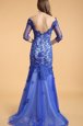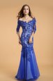 Royal Blue Mermaid Off The Shoulder Sleeveless Lace Floor Length Zipper Beading Prom Party Dress