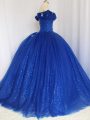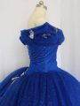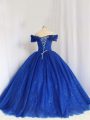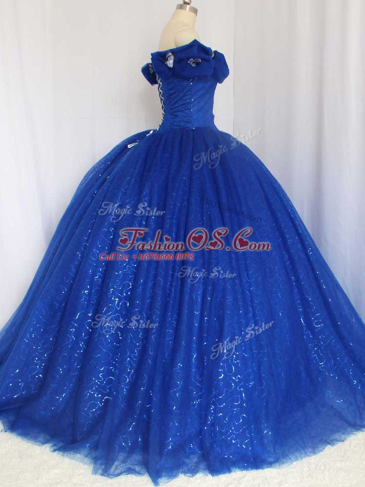 Royal Blue Off The Shoulder Lace Up Hand Made Flower Quinceanera Dress Cap Sleeves