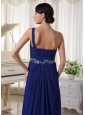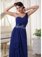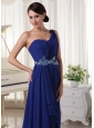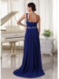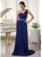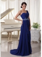Royal Blue One Shoulder Chiffon Prom / Evening Dress With Brush Train Appliques With Beading and Ruch