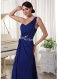 Home >  Prom Dresses >  Popular Prom Dresses > Royal Blue One Shoulder Chiffon Prom / Evening Dress With Brush Train Appliques With Beading and Ruch